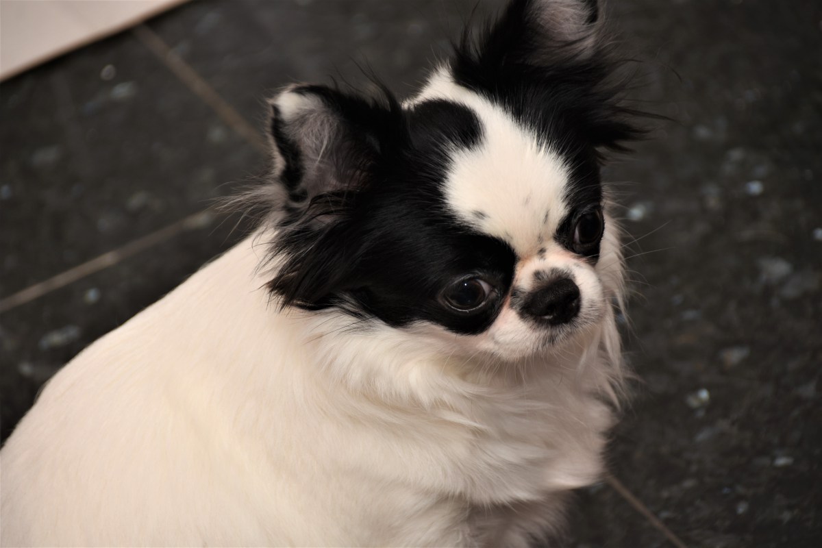 Farbe: weiß-schwarz gescheckt, Langhaar